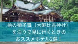 旅行 桧の獅子舞(大麻比古神社)を泊りで見に行くときのおススメホテル2選! 桧の獅子舞は400年続く伝統行事で、夫婦獅子の物語を太鼓や拍子木に合わせて舞い、五穀豊穣や家内安全を祈願するお祭り。毎年11月1日に行われる大麻比古神社例祭、泊りがけ観覧するのにおすすめのホテルを紹介します。 2025.09.28 旅行祭り